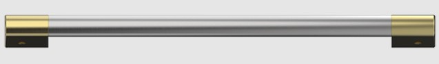 Stainless steel handles with brass-colored off-stands, ideal for both light and dark kitchens