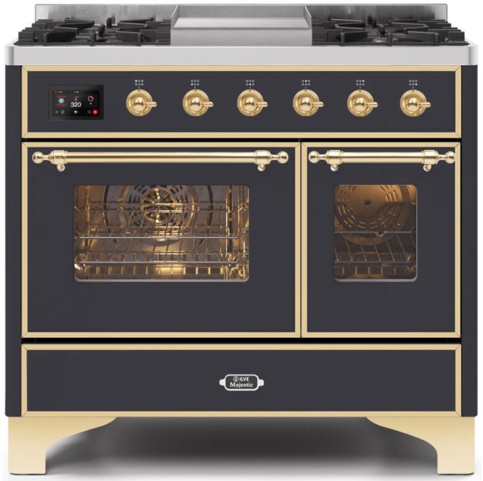 The 40" Majestic freestanding range brings the ultimate cooking experience to your kitchen. The large European Convection oven gives you the power to experiment with your dishes and get even cooking, while the full-width dishwarming drawer gives the option to use residual heat of the oven to keep cooked food warm or warm your dishes before serving. The cooktop features semi-sealed burners with various BTUs to cook whatever you want, however you want.Read More