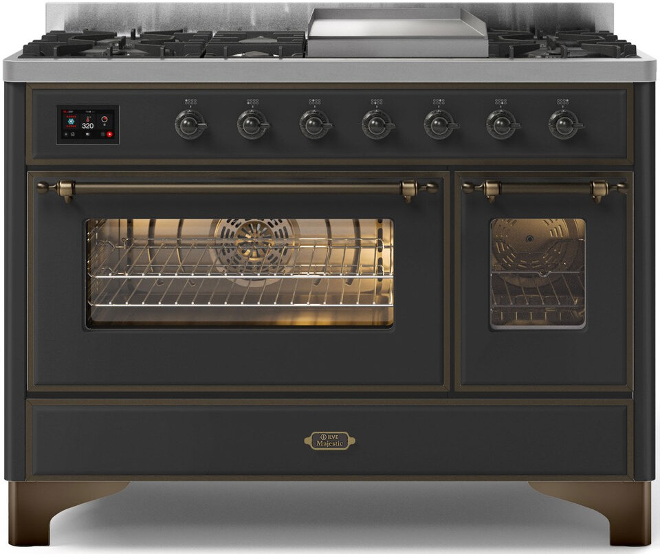 The 48" Majestic freestanding range brings the ultimate cooking experience to your kitchen. The large European Convection oven gives you the power to experiment with your dishes and get even cooking, while the full-width dishwarming drawer gives the option to use residual heat of the oven to keep cooked food warm or warm your dishes before serving. The cooktop features semi-sealed burners with various BTUs to cook whatever you want, however you want.Read More