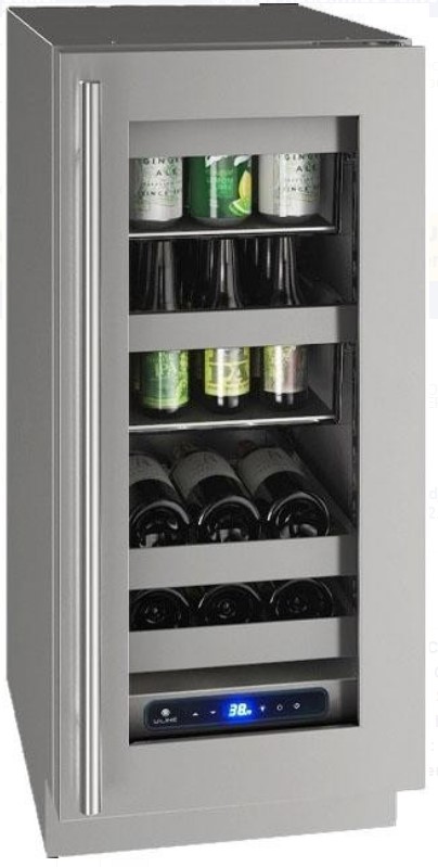 The undercounter beverage center features LED lighting that automatically turns off when the door is closed, or can be set to stay on for 3 hours. The wine racks feature solid natural beech wood fronts that can easily be stained to match surrounding cabinetry.