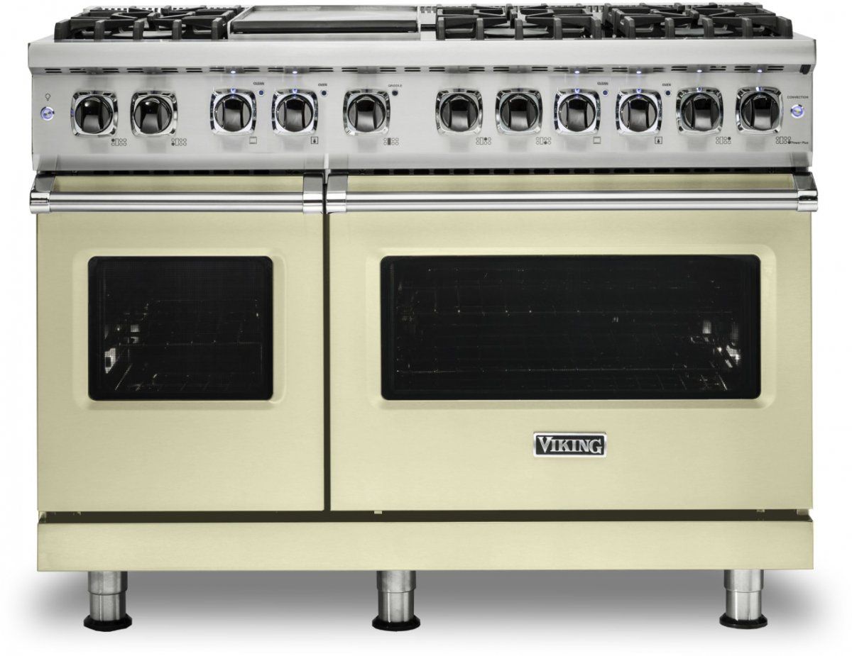 High-performance cooking modes include bake, convection bake, TruConvec™ Convection Cooking, convection roast, broil, convection broil, convection dehydrate, and convection defrost; left oven in 48” wide model includes proofing mode