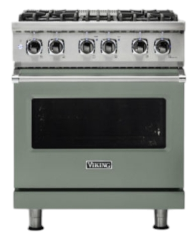 The Viking® Eucalyptus 30" Self-Cleaning Dual Fuel Range blends timeless elegance with advanced cooking technology. Featuring gas burners, an electric self-cleaning oven, and durable craftsmanship, it offers precision, convenience, and style, elevating any modern kitchen effortlessly.Read More