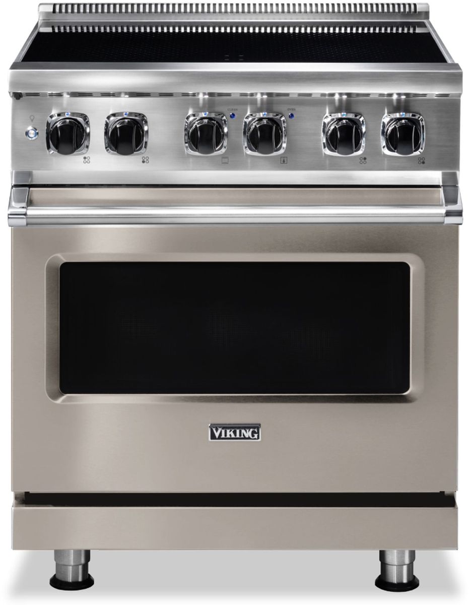 Viking® 30" Pacific Gray Freestanding Induction Range has Induction Elements convert electricity into a magnetic field, which reacts with iron in your cookware and instantly transforms the pan into the heat source.Read More
