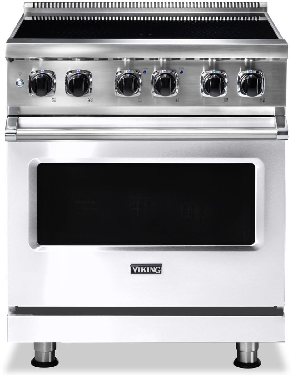 Viking® 30" Frost White Freestanding Induction Range has Induction Elements convert electricity into a magnetic field, which reacts with iron in your cookware and instantly transforms the pan into the heat source.Read More