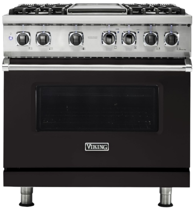 The Viking® Onyx 36" Self Cleaning Dual Fuel Range combines luxury and performance. Featuring a spacious gas cooktop, an self-cleaning oven, and a built-in griddle, it offers precise cooking control and a stylish finish for any kitchen.Read More
