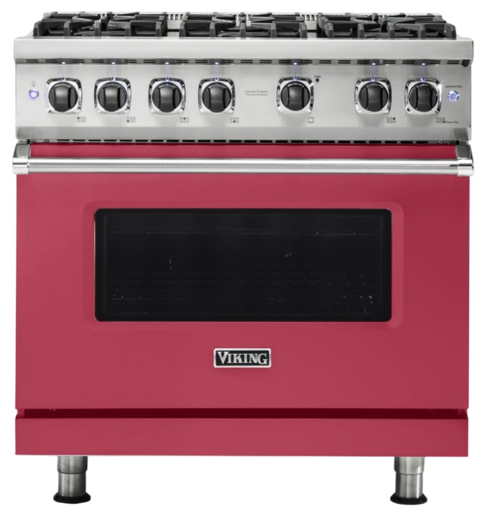 Viking® 36" Gas Range with six sealed burners offers powerful performance and precise control. Designed for durability and style, it’s ideal for professional or home kitchens, combining sleek design with efficient cooking capabilities for exceptional culinary results.Read More