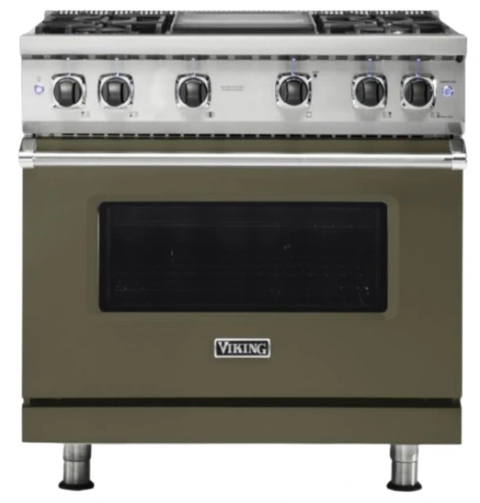The Viking® 5 Series 36" Martini 6-Burner Gas Sealed Range offers a perfect combination of style, power, and versatility. The Martini finish provides a sleek, sophisticated look that complements any kitchen design.Read More