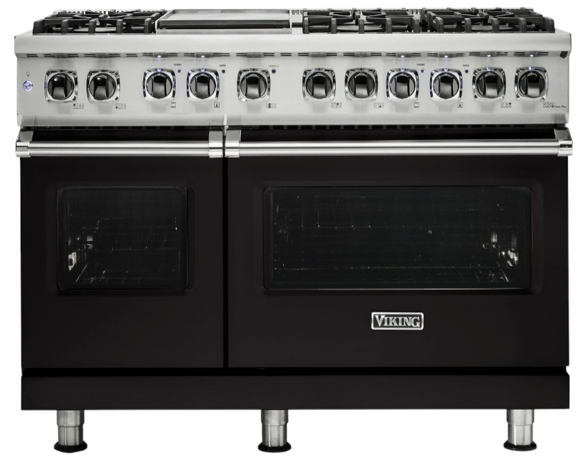 The Viking® Onyx 48" Dual Fuel Range combines luxury and performance. Featuring a spacious gas cooktop, an self-cleaning oven, and a built-in griddle, it offers precise cooking control and a stylish finish for any kitchen.Read More