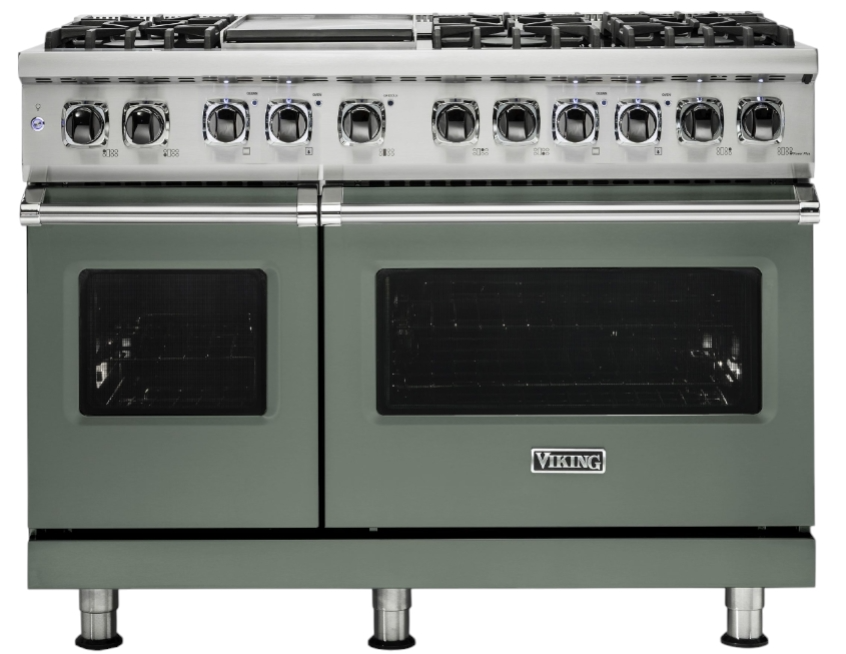 The Viking® Eucalyptus 48" Dual Fuel Range combines luxury and performance. Featuring a spacious gas cooktop, an self-cleaning oven, and a built-in griddle, it offers precise cooking control and a stylish finish for any kitchen.Read More