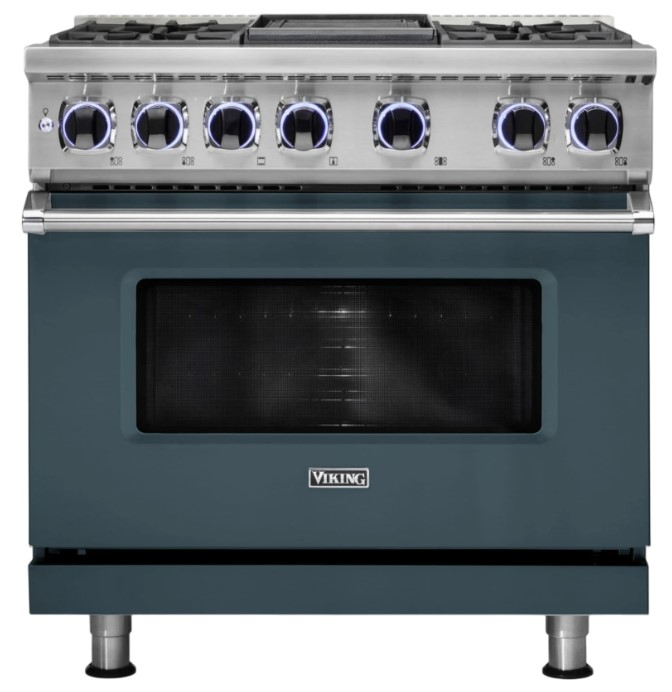 The Viking® 36" Dual Fuel Sealed Burner Range combines a gas cooktop with sealed burners for easy cleanup and precise heat control, and an electric oven for consistent, even cooking. It offers powerful burners, multiple cooking modes, and advanced features for versatile, high-performance cooking.Read More