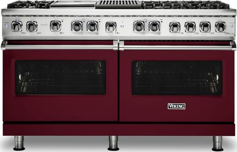Viking® Professional 5 Series 60" Pro Style Dual Fuel Range-Burgundy with 9.4 cu. ft. total capacity, 6 burners with griddle and grillRead More